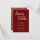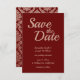 Uma cor damasco vermelha escura ou burgundy e rosa de ouro pálido e vermelho para o seu casamento. O texto Salvar a Data é um belo estilo de caligrafia contemporânea. O fundo por trás da cor damasco é uma foto digitalmente aprimorada, e não uma folha metálica de ouro-rosa
