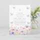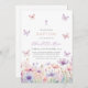 Um bonito design floral para a sua borboleta chamado convite Baptism. Perfeito para o dia especial da sua menina com detalhes cor-de-rosa pastel e roxo.