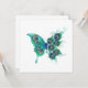 Artistically drawn, fictional, green, detailed butterfly with green, beautiful, peacock feathers on white background.