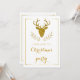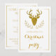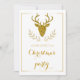 Este design festivo de cartão de Natal apresenta uma bela imagem de uma cabeça de veado em forma texturizada com folha de ouro falsa, com alguns ramos de árvore. Existem áreas de texto personalizáveis para os detalhes da sua festa de Natal. Aviso: A textura da folha não é real. É uma imagem impressa que imita a aparência da folha de ouro.