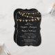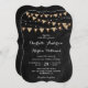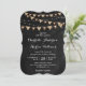 Convite de casamento do quadro negro, com burlap bunting em fundo preto, enfeitado com luzes de cordas.
