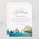 Esta carta de boas-vindas do casamento e modelo itinerário mostra uma pintura aquosa das praias tropicais do Cabo San Lucas México e um itinerário ao fundo. Edite facilmente a maioria dos textos para corresponder ao seu evento