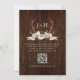 Este convite de casamento rústico boho com fundo de madeira escura apresenta as iniciais do monograma da noiva e do noivo emolduradas por chifres de cervo que são decorados com um buquê floral burgundy em aquarela, e uma faixa com a frase "A Caça Terminou." O código QR com o site do seu casamento e informações de RSVP está no verso. Entre em contato comigo através do Zazzle Chat se você precisar de ajustes de design, mais produtos correspondentes ou outras opções de cores.