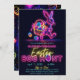 Convite de Caça ao Ovo de Páscoa com Brilho no Escuro em neon brilhante. Venha e vamos caçar ovos de Páscoa com brilho! Convite de Páscoa colorido e divertido em neon perfeito para festas de aniversário, festas infantis ou apenas por diversão! Caça ao ovo de Páscoa noturna. Modelo personalizável disponível impresso com verso correspondente ou como download digital instantâneo.