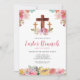 Modelo de Cartão de Convite Personalizado para Caça ao Ovo de Páscoa Religioso com Aquarela Floral para Café da Manhã