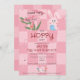 Para a sua festa de celebração da Páscoa, escolha este modelo de convite de Coelho de Aguarela Rosa com Caça aos Ovos de Páscoa Brunch, com desenhos doodle desenhados à mão, modernos e fofos, sobre um fundo xadrez rosa em dois tons.