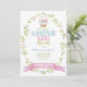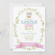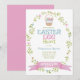 Convite para Caça de Ovos de Páscoa com cores pastéis e bonito coroa oval floral e cesto de ovo de Páscoa.