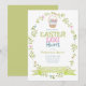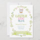 Convite para Caça de Ovos de Páscoa com cores pastéis e bonito coroa oval floral e cesto de ovo de Páscoa.