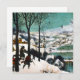 Cartão com Pieter Bruegel, a pintura de óleo em madeira do Velho Os Caçadores na Neve (1565). Uma vila mergulhada na neve dá as boas vindas a um grupo de caçadores e cães. Skate de aldeões nos lagos gelados. Um presente de Natal feliz!