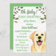 Querida! Bonita ilustração de cão labrador, bebê ou rapaz, convite de chá de fraldas neutro em relação ao gênero. Chá de Bebê. Pintura de aquarela russa e cãozinha de Monika Howarth. Natureza, convite para chás de fraldas de ilustração verde. Personalize-o com seus detalhes.