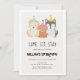 Este lindo convite de aniversário "venha, sente, fique" apresenta três cachorros com chapéus de festa em um fundo bege claro enquadrado por uma fronteira branca. O verso apresenta um fundo brilhante dourado falso. Personalize para suas necessidades.Você pode encontrar mais produtos correspondentes na minha loja.