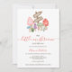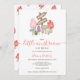O nosso cogumelo está a caminho! Chamas de fadas de outono, fadas de madeira, convite para chá de fraldas, com pequenos cogumelos bonito e bonitos, em vermelho, rosa, azul, roxo e rosa e um cartaz de madeira que diz chá de fraldas. O chá de fraldas perfeito convida para a sua festa de outono com um tema de fada ou floresta.