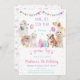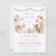 Este adorável convite apresenta cachorros bonitos com balões, banners e falsos poços de ouro confetti.