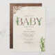 Tema do chá de fraldas de vassoura neutro com a inscrição "BABY" em couro inspirou textura falsa decorada com boho cacto e outros designs botânicos. Designs botânicos nos cantos. O fundo é a aquarela inspirada. O lado inverso é design de couros falsos inspirados.