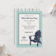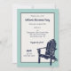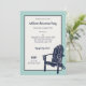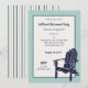 Esses convites personalizados são perfeitos para festas de aposentadoria, festas de aniversário e muito mais. Eles apresentam uma ilustração de uma cadeira Adirondack de madeira em azul marinho contra um fundo azul aqua claro e branco casca de ovo. Os convites de painel plano estão prontos para serem personalizados com todos os detalhes da sua festa em letras azuis marinho. O verso tem um padrão de listras coordenadas.