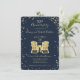 Convite de aniversário de casamento de 50 anos com design de estrelas douradas brilhantes e cadeiras de praia Adirondack, convite de festa de aniversário romântico em azul marinho e dourado.