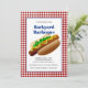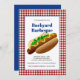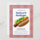 Este convite para churrascos no quintal de Verão oferece um grande gráfico de um cachorro quente e é acentuado com uma fronteira vermelha verificada. O texto personalizado permite adicionar os detalhes da sua parte.