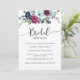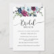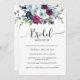 Convite de chá de panelas nupcial / café da manhã / casal com delicada flor de aquarela e "Nupcial" em caligrafia manuscrita. Flores em uma mistura atraente de tons de cereja, borgonha, ameixa, azul empoeirado e azul-marinho. Parte de trás do cartão com o mesmo detalhe floral da frente e nome da noiva. Parte de nossa coleção "Floral Cereja, Azul e Borgonha".