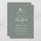 Este convite para o café da manhã de casamento da montanha de silhueta branca verde é perfeito para um evento rústico. O design apresenta montanhas limpas pintadas manualmente.