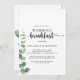 Este convite para o café da manhã do eucalipto, com prazer verde, é perfeito para um evento rústico. A design apresenta galhos e folhas botânicas elegantes e desenhadas a aquarela e desenhadas à mão.