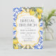 Celebre a noiva com um toque de charme mediterrâneo. Este convite de café da manhã para a noiva apresenta limões bronzeados pelo sol, folhagens delicadas e clássicos elementos inspirados em azulejos, trazendo a beleza e o calor de um dia de verão na costa para a sua celebração.