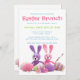 Este design fofo para os feriados apresenta coelhinhos de Páscoa tricô, ovos de Páscoa e flores de primavera em rosa, roxo, verde e branco. Personalize editando o texto nas caixas de texto para seus convites personalizados para o brunch ou almoço de Páscoa.