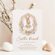 Celebre a primavera da maneira mais encantadora com este convite elegante de café da manhã de Páscoa, apresentando um adorável coelho em aquarela dentro de uma moldura floral vintage. Tons pastel suaves, flores delicadas e tipografia refinada criam um design atemporal perfeito para organizar uma reunião de Páscoa elegante.