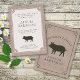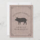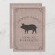 Convite engraçado de porco retrô para um churrasco, café da manhã com bacon, piquenique ou brunch. Fácil de personalizar para se adequar a qualquer evento. Acabamento rústico em estilo fazenda com imitação de aniagem.
