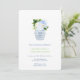 Vaso de jarra de gengibre azul e branco cheio de flores azuis, brancas e verdes e um suporte com padrão "Greek Key". Configurei o modelo para um Brunch de Recém-Casados, mas todos os campos de texto são personalizáveis de acordo com as suas necessidades. No verso, você pode alterar a cor de contraste (mostrada aqui como azul escuro) para qualquer cor que desejar, entrando na ferramenta de design (embaixo da área de personalização de texto, clique em "personalizar mais") e alterando a cor de fundo no verso.