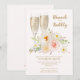 Convites elegantes para chá de noiva com café da manhã e champagne em rosa pálido apresentam duas taças de champagne e lindas flores de jardim com seus detalhes em letras elegantes. ITENS CORRESPONDENTES em nossa coleção.