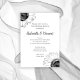 Convide os convidados a continuar a festa na manhã após a cerimônia de casamento com o sofisticado Convite para Café da Manhã Pós-Casamento com Girassóis Preto e Branco. Este elegante convite personalizado para o café da manhã ou almoço após o casamento apresenta girassóis pretos e brancos adornando os cantos com um fundo branco.