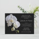 Continue celebrando a noiva e o noivo recém-casados na manhã após a cerimônia de casamento com o lindo Café da Manhã Pós-Casamento com Orquídea Branca em Suporte Preto. Este convite personalizado e elegante para Café da Manhã ou Almoço Pós-Casamento apresenta uma fotografia floral de flores de orquídea phalaenopsis brancas no caule com fundo preto.