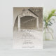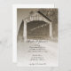 Convide os convidados para celebrar a noiva e o noivo recém-casados na manhã após a cerimônia de casamento com o charmoso Convite de Café da Manhã Pós-Casamento Rustic Covered Bridge. Este convite personalizado para Café da Manhã ou Almoço Após o Casamento apresenta uma fotografia em tom sépia digitalmente aprimorada da histórica e desgastada ponte coberta de madeira Nevins, construída sobre o Little Raccoon Creek na CR130, no condado rural de Parke, Indiana. Perfeito para um tema de casamento de ponte de madeira casual, porém sofisticado, ou um tema de casamento country casual, porém sofisticado.