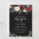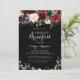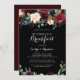 Este convite para o café da manhã de botânica preto é perfeito para uma família e amigos clássicos, dia depois do casamento. A design apresenta flores brilhantes, vermelhas, marinhos, azuis e esbranquiçadas radiantes e graciosas pintadas à mão num fundo preto, inspirando beleza natural.