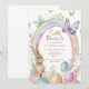 Entre no espírito das festas com o nosso encantador convite de Brunch de Páscoa e Caça aos Ovos para uma menina! Com adoráveis desenhos pastel de coelhinhos, ovos de Páscoa coloridos e flores de primavera em flor, este convite captura perfeitamente a alegria da época. A mistura divertida de tons de rosa, amarelos e verdes-menta adiciona um toque alegre, preparando o cenário para uma celebração cheia de diversão. Personalize o convite com o nome da sua filha, detalhes do evento e informações de RSVP para um toque especial. Perfeito para dar as boas-vindas a amigos e familiares para um delicioso brunch de Páscoa seguido de uma caça ao ovo mágica, este convite promete um dia de risadas, alegria e memórias da primavera!