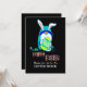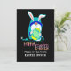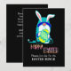 Convite para Café da Páscoa Feliz com Gnome e Ovo. Faça para café da manhã, jantar, uma festa ou uma Caça ao Ovo de Páscoa. Gnome engraçado e moderno. Ele está segurando um ovo de Páscoa decorativo. Uma mensagem tipográfica de Feliz Páscoa. Adicione suas informações na frente e no verso do cartão ao Personalizar este modelo. Edite para alterar a cor do fundo e do texto.
