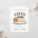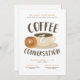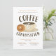 O café e a conversa estão perfeitamente juntos. Este convite apresenta um delicioso bagel e uma xícara de café