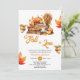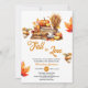 Um elegante design Chá de panela com livros, abóboras, trigo, folhas de árvores, caligrafia elegante e um tema de "queda no amor".