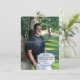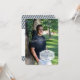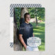 Caixa de texto moderna perto da parte inferior do convite para fotos de graduação de cheio com caixa de ênfase e informações de festa de formatura de design distribuída na parte traseira.
