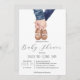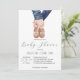 Modelo de chá de fraldas para bebê minimalista moderno Convite para transferência instantânea, pais neutros do ponto de vista do gênero com as mãos segurando calçados para bebês, aquarela, fonte simples moderna e minimalista