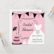 Calçado personalizado Bonito e bonito Para o chá de panela Pensado apresenta um bolo de casamento com uma camada de calçado exclusiva, vestido de noiva e banners em um fundo de bolinhas cor-de-rosa e áreas em que você pode adicionar o nome do convidado de honra e detalhes do chá de panela, incluindo data, hora, local, informações de RSVP e muito mais.