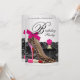 Convite de aniversário-leopardo rosa com rendas elegantes, garrafa de perfume preta e rosa, batom vermelho e convite de aniversário de calçado alto-leopardo rosa. Este bonito convite de aniversário-leopardo cor-de-rosa é facilmente personalizado para o seu evento adicionando detalhes do seu evento, estilo de fonte, tamanho e cor de fonte e texto.