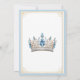 Convite de aniversário de Cinderela com calçados de salto alto de diamante bonito, vestido e tiara em um fundo azul bonito e prateado. Você pode alterar a cor da borda azul e a cor do texto. Este convite à Cinderela azul e prateada para bebê é facilmente personalizado para o seu evento simplesmente acrescentando os seus detalhes.