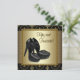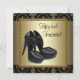 Os elegantes convites de festas de aniversários pretos e dourados da mulher. Este alto salto preto calçado preto preto preto e convite de aniversário dourado é facilmente personalizado para o seu evento, simplesmente escolhendo o botão "Personalizar!" para começar a adicionar os detalhes do evento, estilo da fonte, tamanho da fonte e cor e texto. Observe que todos os designs de cartas e convites que você encontrará no Zazzle são gráficos impressos sem joias reais, arcos, levantados, gravados em relevo ou peças ou peças adicionadas.