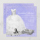Bonito vestido de bola roxo, calçados de salto alto e princesa roxa tiara, modelo de convite de aniversário Quinceanera. Este convite bonito de lavanda roxo da Quinceanera é facilmente personalizado para o seu partido ou evento, simplesmente escolhendo o botão "Personalizar!" para começar a adicionar os detalhes do evento, estilo de fonte, tamanho de fonte e cor e texto. Observe que todos os designs de convite que você encontrará no Zazzle são gráficos impressos sem joias reais, arcos, levantados, gravados em relevo ou peças ou peças adicionadas.