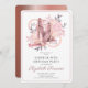 Um elegante 50 e fab 50 convite de aniversário surpresa em um martelo rosa-ouro brilhante com calçados e rosas de salto alto dançantes, e seu nome em uma tipografia de roteiro e uma corda de pérolas integradas ao design e tipo. Um convite exclusivo para na moda para este aniversário de marco. 50 e ainda fab! Tipo colorido. elegante e chic. Os cantos arredondados adicionam um toque de classe.