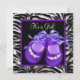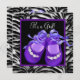 Adoráveis convites para bebês de zebra roxa. Doce calçados roxos de bebês roxos convites para bebês de zebra roxos. Esses bonitos convites para chuveiros de bebês pretos e roxos são facilmente personalizados para seu evento, adicionando detalhes de seu evento, estilo de fonte, tamanho de fonte e cor e texto.