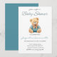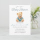Urso com o convite de chá de fraldas da camisa azul. Excelente de ser um Garoto.