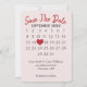 calendário "salve a data" com coração vermelho em fundo de coração rosa para próximo casamento.