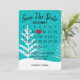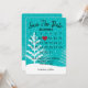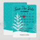 Calendário "Salve a Data" com coração vermelho em aqua com flocos de neve e árvores para próximo casamento.